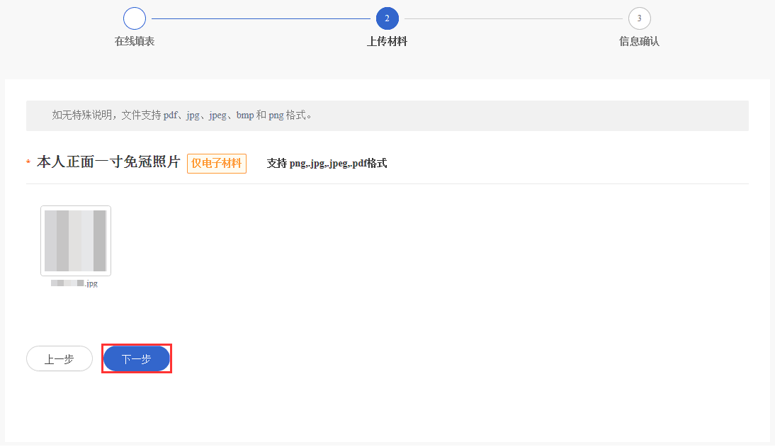 (3)在線填表,上傳材料,信息確認,提交。在線填表-相關信息務必填寫準確,如轉入地、郵箱等;上傳材料-照片須近照、標準證件照,信息確認-如發現填錯,返回“上一步”修改