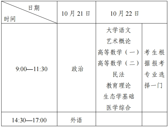 2.專升本考試時間表