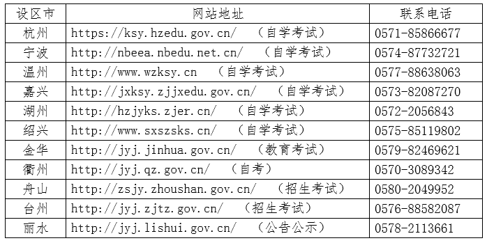 四、各設區(qū)市教育考試機構網(wǎng)站地址及聯(lián)系電話