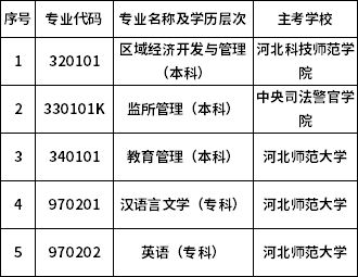一、區域經濟開發與管理(本科)、監所管理(本科)、教育管理(本科)、漢語言文學(專科)、英語(專科)5個專業從2023年開始實施停考,不再接受新考生(含其他專業在籍考生)報名報考。