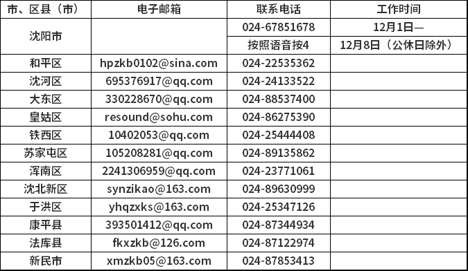 五、沈陽(yáng)市各區(qū)縣(市)辦理畢業(yè)工作電子郵箱和聯(lián)系電話(huà)