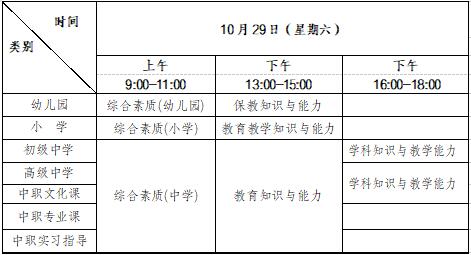 (一)中小學教師資格考試各學段考試科目的具體時間,如表1所示。