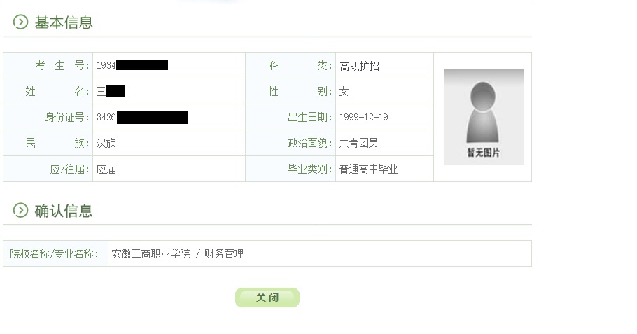 3.退出后重新登錄gkbm.ahzsks.cn,可以查詢到自己確認(rèn)的院校:
