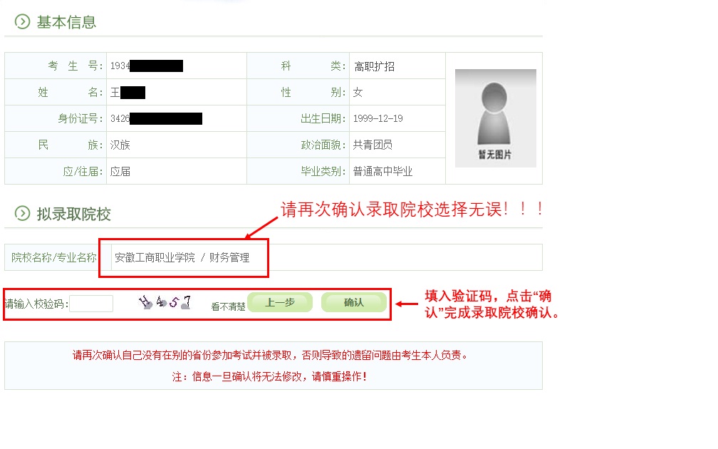 ? 一旦確認(rèn)了錄取院校,是不能再次修改的,請(qǐng)謹(jǐn)慎操作!!!